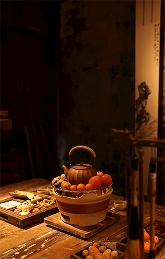 与朋友或家人围炉而坐,烧水,沏茶,聊天