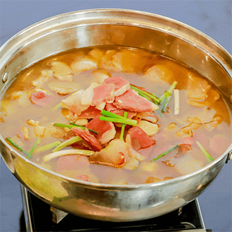 勾兑一锅新鲜火锅汤料。独家定制各异口味,鲜香味厚,满足不同火锅爱好者。
